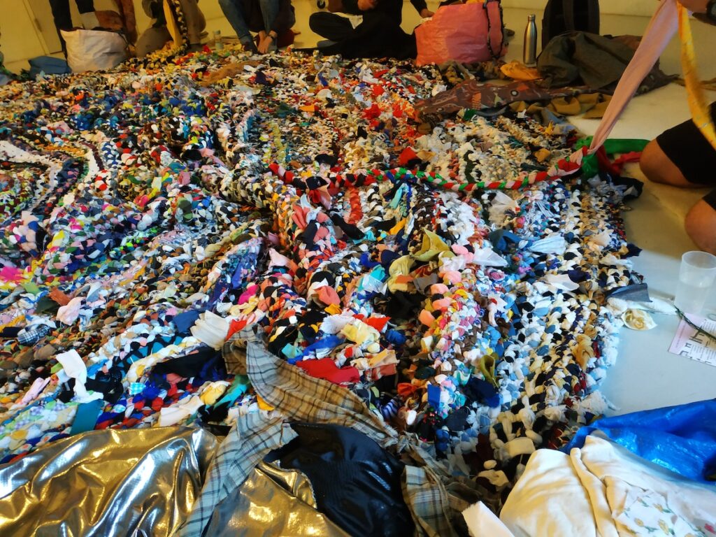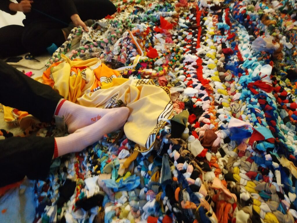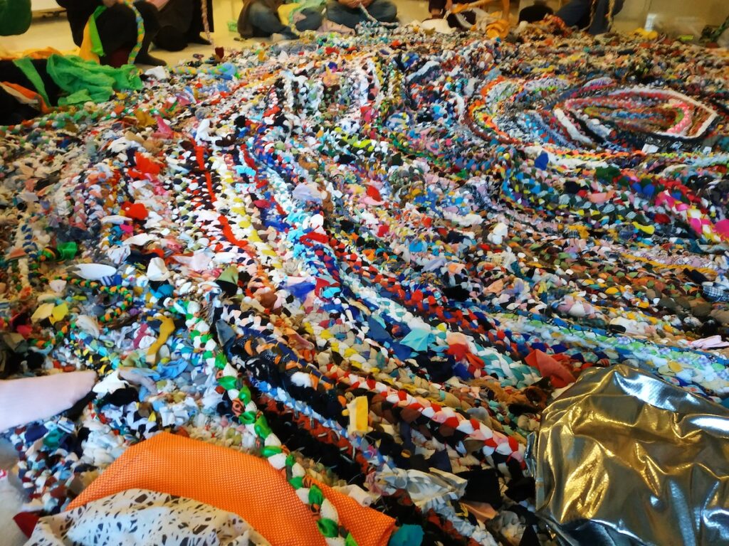 Wir haben gemeinsam mit den Organisator*innen und den Besucher*innen im Kreis den Teppich weitergeflochten. Und dabei vom Planet 10 und dem geplanten Aufbau erzÀhlt.